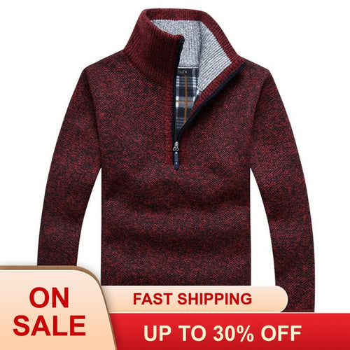 Autumn Men's Thick Warm Knitted Pullover Solid Long Sleeve Turtleneck Sweaters Half Zip Wool Fleece Winter Coat Comfy Clothing