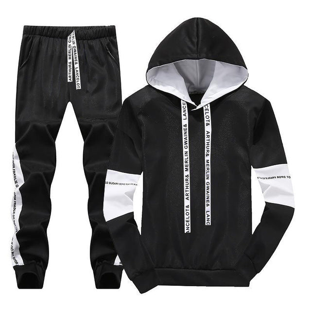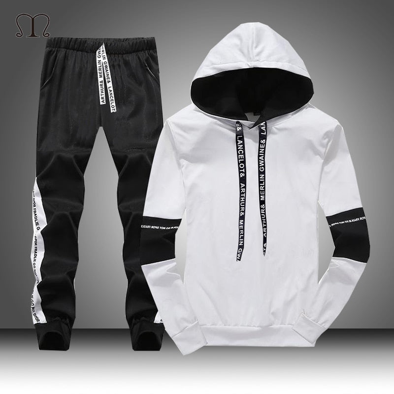 White Black Men Hoodies Set Fashion 2019 Autumn Brand Casual Tracksuit Mens Set Sports Two Piece Patchwork Hoodie Pant Male Suit
